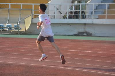 在比赛开始前,运动员们在赛场上做侧压腿,高抬腿和扭转关节等热身运动,为接下来的400米做足准备。随后,运动员们蹲下,脚踏助跑器,摆好起跑姿势,犹如一尊雕像。此时,就连满场的加油声和欢呼声也敌不过这起跑前这压抑紧张的气氛。在发令枪“砰”一声响下的刹那,人类的力量得以展现,拼搏在那一瞬间化为生命的起点。各学院的健儿们开始奋力加速向400米的跑道发起冲击。初程200米,我院刘贵平一度领先。待到比赛中程时,他略有放缓脚步,步伐略显沉重。其他院的选手也不甘示弱,蓄力向前冲。还剩100米时,比赛开始进入白热化阶段,各院运动健儿发起了最后的冲刺。就在此时比赛局势开始逆转,刘贵平在冲刺阶段,略胜其他选手一筹,一举超过两人,速度却依旧不减。