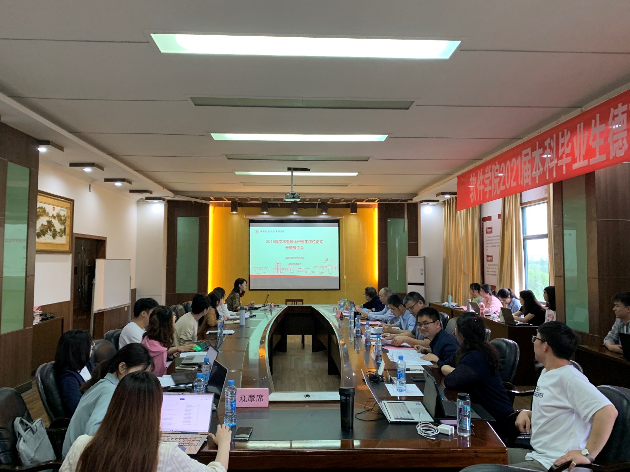 5月22日9:00-18:00,我院在瑶湖校区先骕楼3306报告厅召开2019级硕士研究生开题报告会。本次报告会分为上、午两场进行。全体导师组成员及2019级研究生、2020级研究生共计70余人参加。
